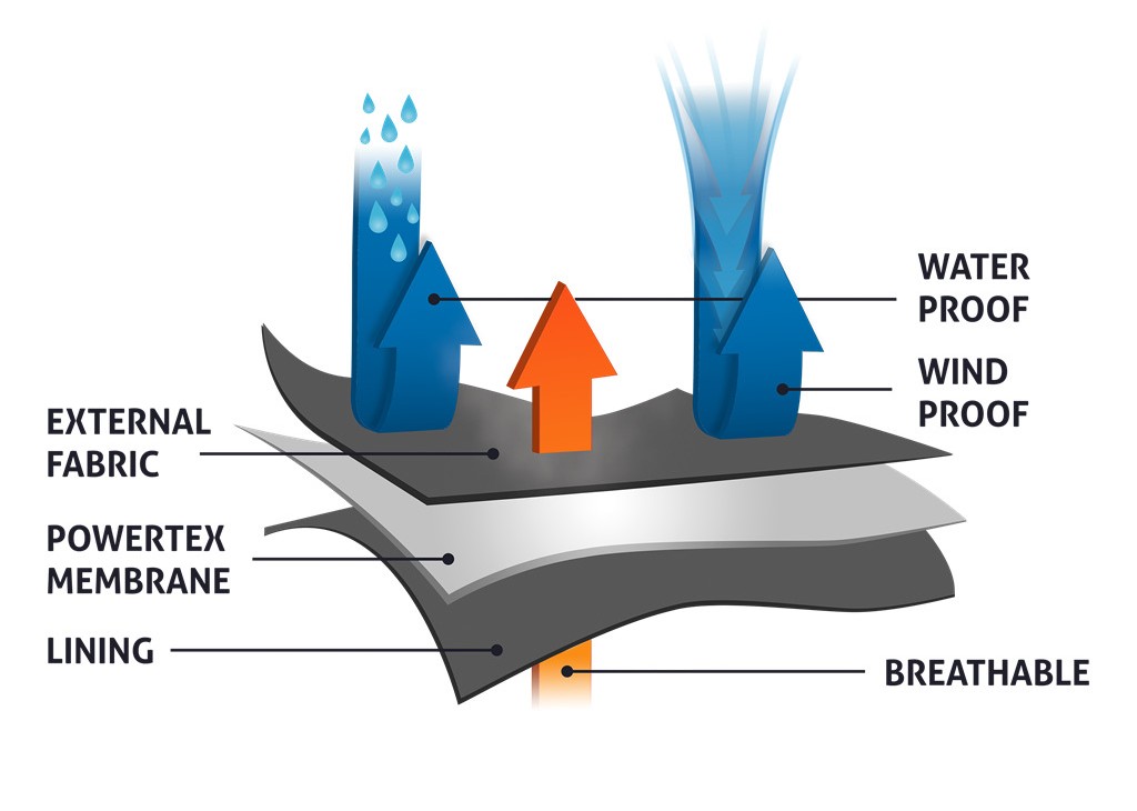 Ultralehká, nepromokavá a extrémně prodyšná minimalistická bunda NXT Powertex 3L má třívrstvou laminátovou, plně utěsněnou konstrukci ze 100 % recyklovaného polyamidu s odolnou vodoodpudivou úpravou DWR (durable water repellent) bez obsahu PFAS, která zajišťuje vodní sloupec 20 000 mm a propustnost vlhkosti (MVTR) 30 000 g/m²/24 hod.