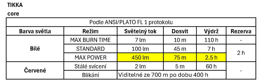 Technologie HYBRID CONCEPT: TIKKA CORE se dodává s dobíjecím akumulátorem CORE a je také kompatibilní se 3 standardními bateriemi AAA/LR03 (nejsou součástí balení); čelovka automaticky rozpozná zdroj energie a upraví světelný výstup.