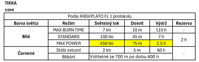 Technologie HYBRID CONCEPT: TIKKA se dodává se 3 standardními bateriemi AAA/LR03 a je kompatibilní s dobíjecím akumulátorem CORE (není součástí balení); čelovka automaticky rozpozná zdroj energie a upraví světelný výstup.