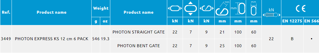 PHOTON STRAIGHT GATE, PHOTON BENT GATE - supelehké pevné karabiny s váhou 36 g