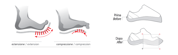 Maximální citlivost a přesnost včetně torzní stability: bota kopíruje pohyby nohy a eliminuje prázdné objemy a tuhé oblasti.