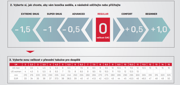 Velikostní tabulky| EU | 37 | 37,5 | 38 | 38,5 | 39 | 40 | 41 | 41,5 | 42 | 42,5 | 43 | 44 | 45 | 45,5 | 46 | 46,5 | 47 | 48 |