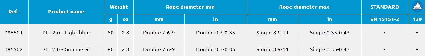 • - použití: jednoduché lano - průměr 8,9 až 11 mm, dvojité lano - průměr 7,6 až 9 mm