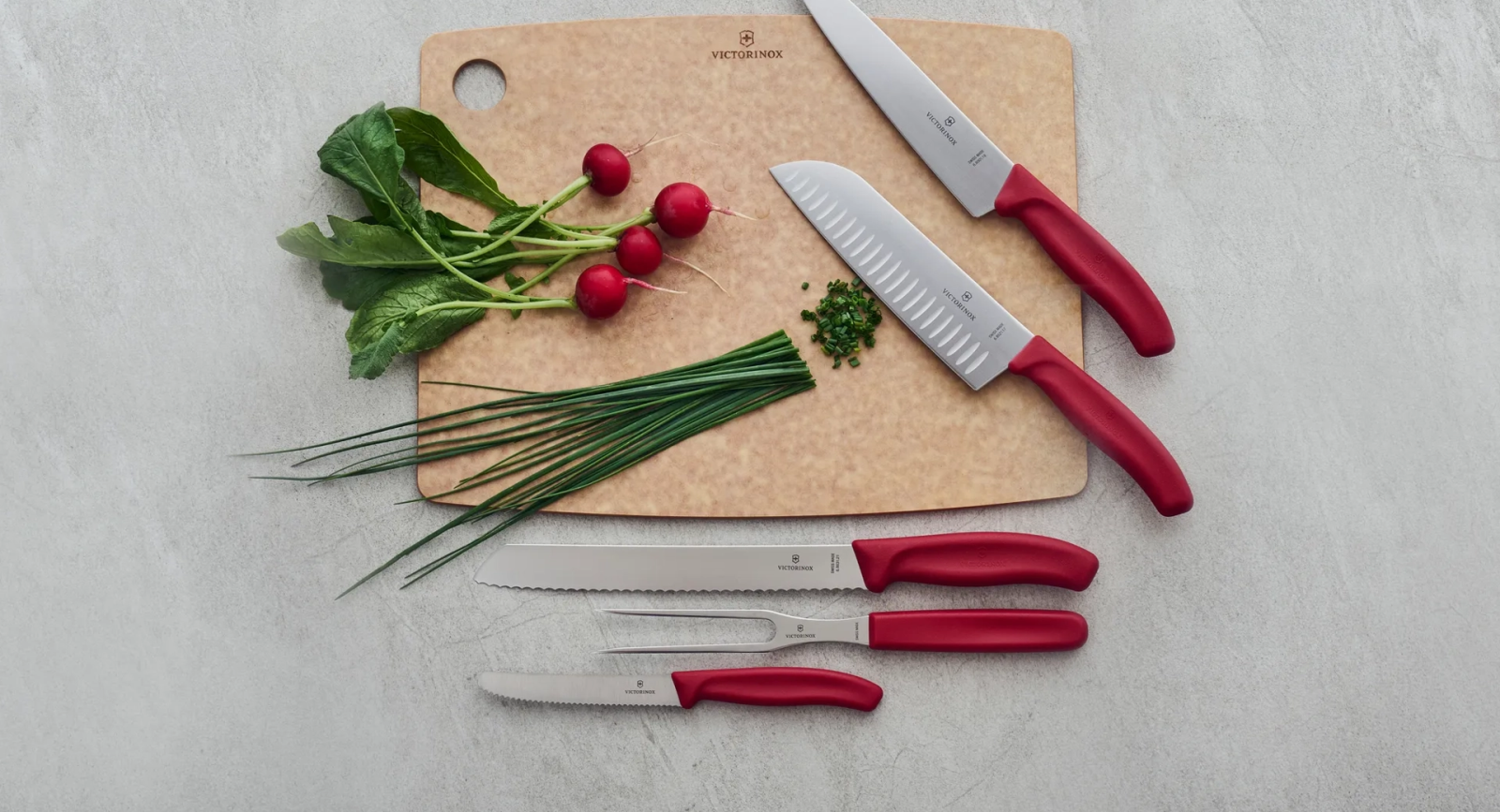 Švýcarský nůž s kratší čepelí, ultra ostrým vlnitým ostřím a ergonomickou rukojetí ideální na zpracování ovoce, zeleniny apod.