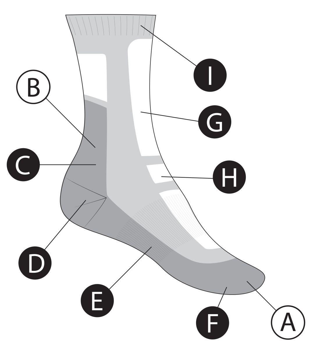 A – Podpora achilovky udrží ponožku na svém místě.
