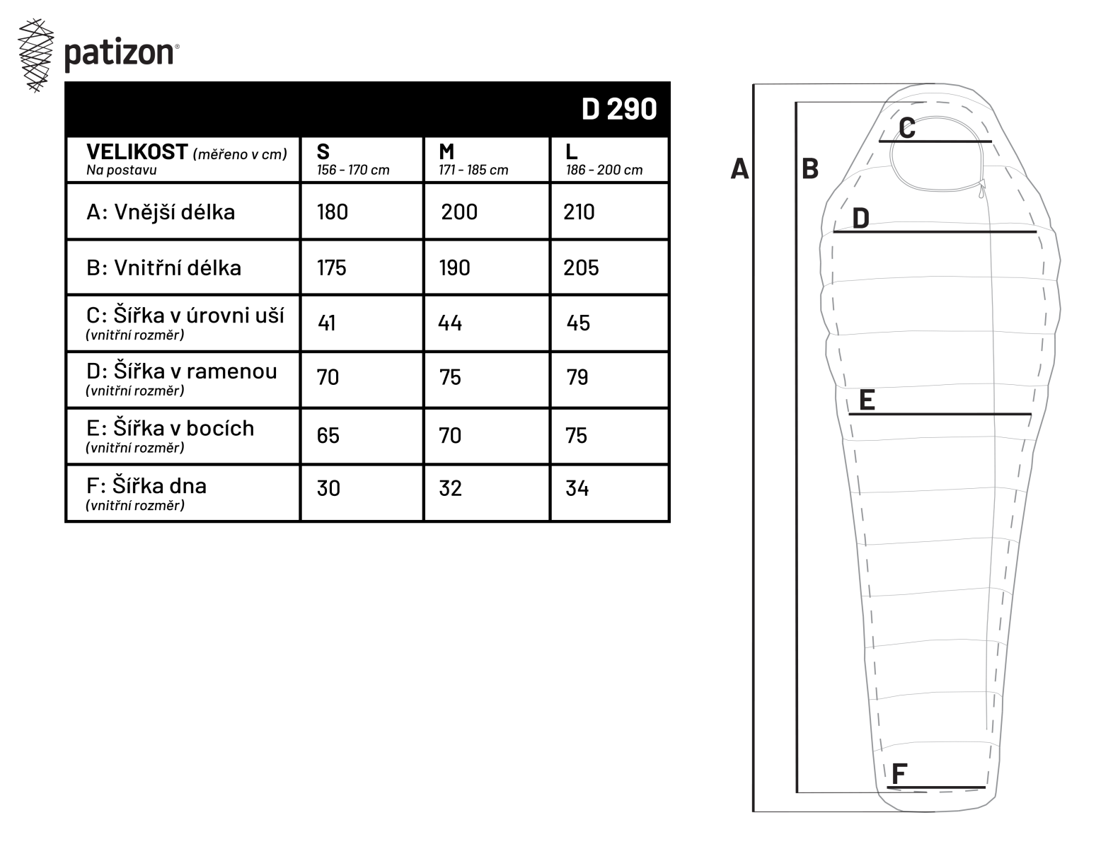 Patizon Dpro 290 je ultralight se skvělým poměrem tepelného komfortu, hmotnosti a sbalitelnosti, se zachováním všech technických vychytávek. Má přesně tu velikost a váhu, která vám nepřekáží, ale zároveň vás dokáže zahřát při jakémkoliv letním dobrodružství. Ti zkušenější a více otužilí jej dokáží využít od května do září, a samozřejmě, v zimě je skvělý na horské chaty, winterraumy. Navíc jsme i na modelu Dpro 290 implementovali rovný zip na přední straně spacáku, čímž jsme vylepšili nejen tepelně-izolační schopnosti spacáku, ale také manipulaci se zipem a objem po sbalení.