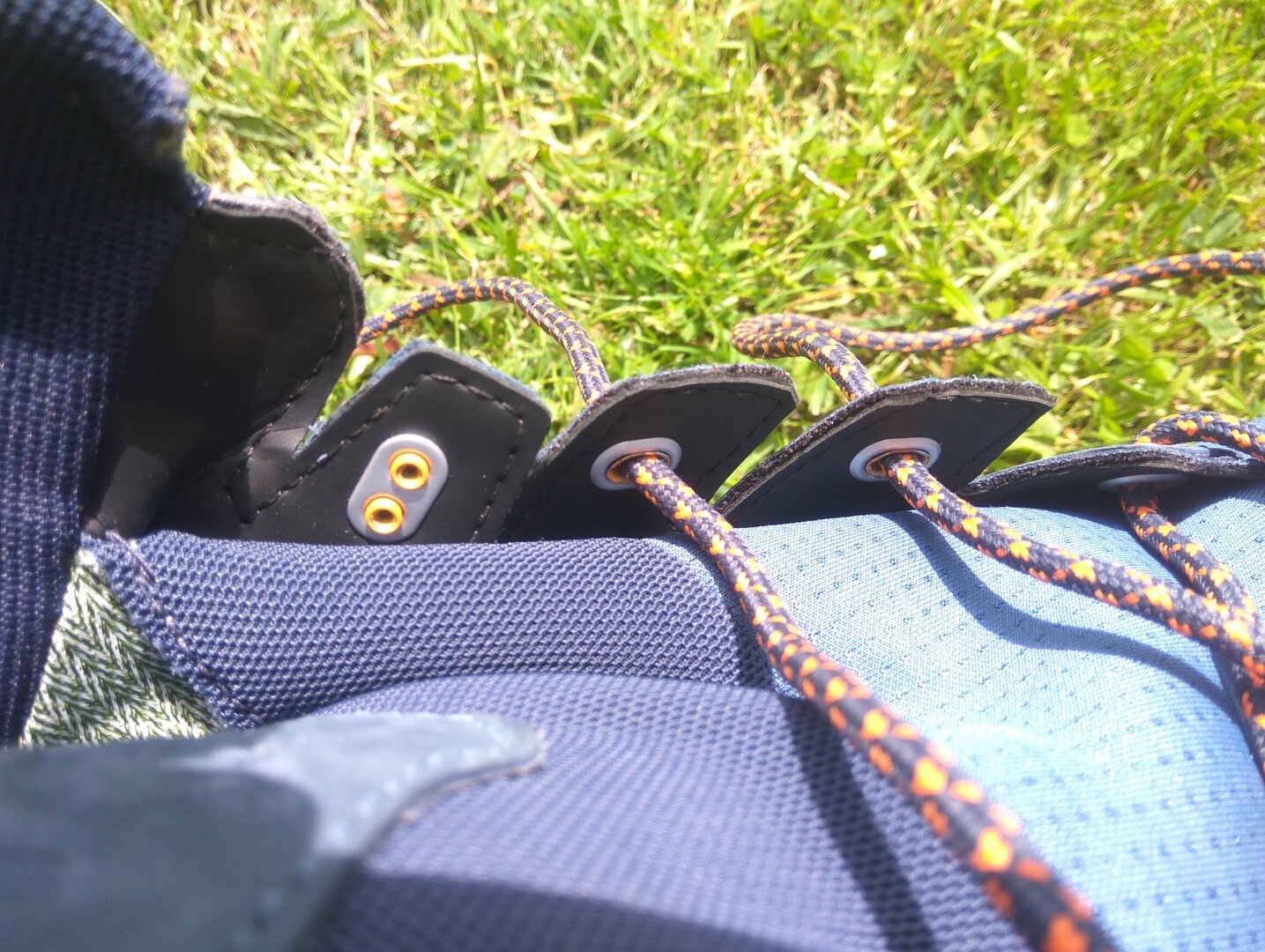 Střih boty je za mě hodně povedený – bota spojuje užší střih paty s širším prostorem v oblasti kolem prstů, takže prsty se v botě krásně rozprostřou.  Tři uzamykatelná očka v horní části boty zároveň drží nohu pevně na místě. V oblasti paty se nachází kalíšek, který pomáhá upevnit patu a zároveň usnadňuje nazouvání boty.
