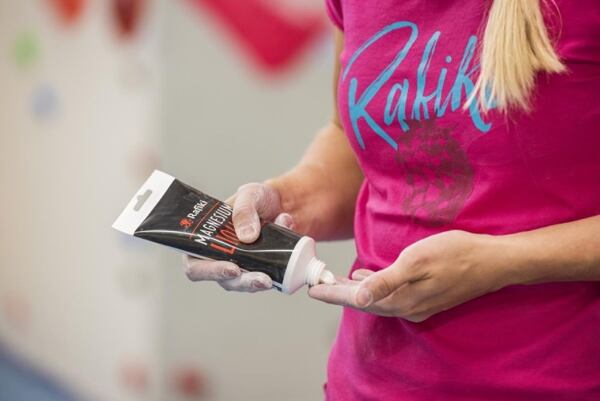 Následně přišlo tekuté magnézium, které se hodí pro lezení na umělé stěně i venku na skalách. Kromě toho, že nepráší, účinkuje zhruba dvakrát déle než práškové magnézium a navíc minimalizuje neestetické „zabělení“ skály. Na ruce se aplikuje buď samostatně, nebo se kombinuje s magnéziem drceným – zvyšuje se životnost jeho účinku.