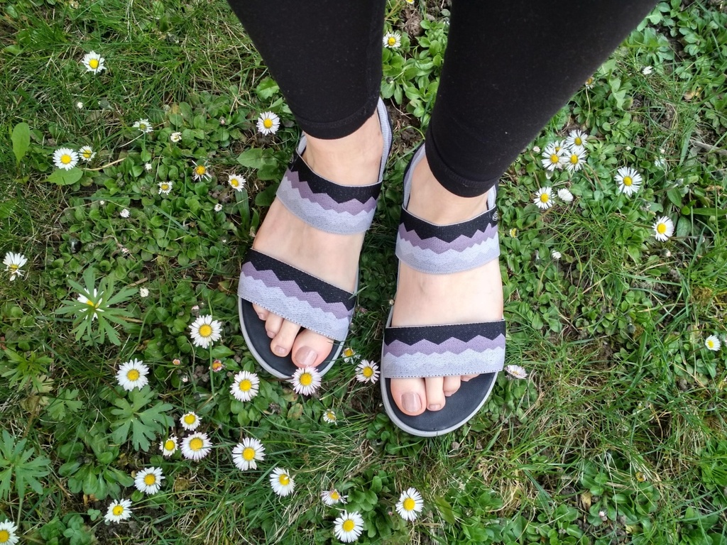Pohodlné, snadno nazouvací boty vhodné pro celodenní nošení. Tři svrchní pásky jsou dostatečně široké*, aby poskytovaly oporu při chůzi a noha se neviklala do stran. Zároveň se nezařezávají ani nedřou díky podšití jemným mikrovláknem v oblasti okolo paty a za prsty.