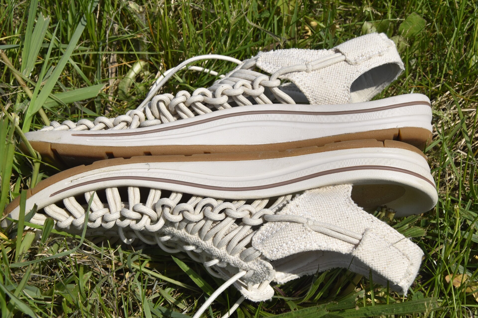 Konstrunkci tvoří lehký svršek spletený ze dvou pevných plátěných šňůrek, rychleschnoucí podšívka a podeševPodrážka boty je světlá a dobře přilnavá. Znám mnoho streetových tenisek, které se Uneekům nemohou rovnat v pohodlí. Tady je mezi podrážkou a stélkou pěna s dobrým tlumením, která dělá výsledný komfort.