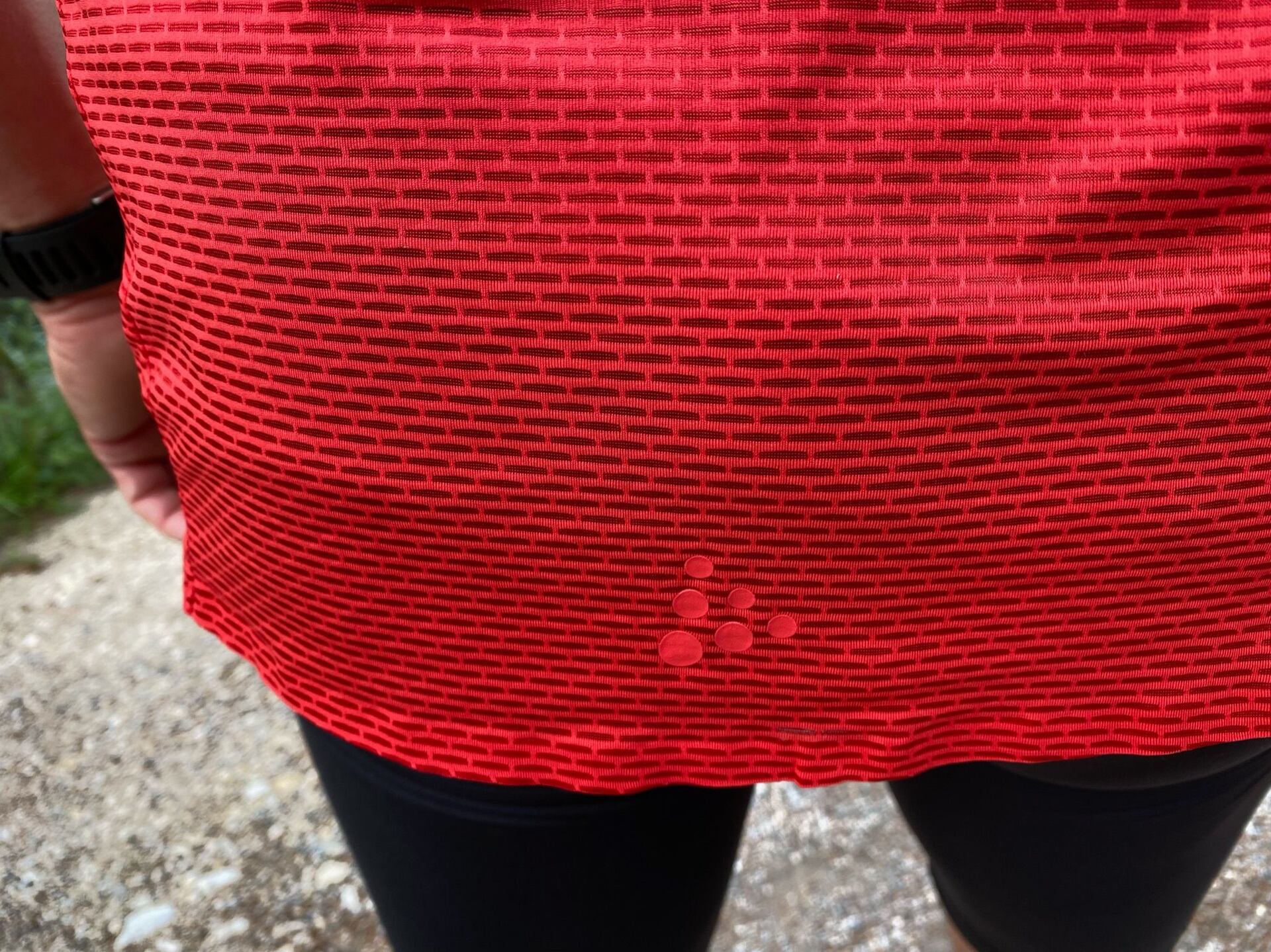 Střih je řešený jako přiléhavý, ale rozhodně nesvírá a nepůsobí diskomfort. Naopak, díky tomu pak můžou vyniknout všechny funkční vlastnosti pleteniny – rychlý odvod potu, chladivý efekt i funkce druhé kůže. Raglánový rukáv se nikde nekrabatí. Velmi kladně hodnotím i zakončení trika u krku, na konci rukávů i dolním okraji – jde o bezešvou technologii, kdy je okraj zahnutý a „zalepený“. Je to maximálně komfortní řešení!