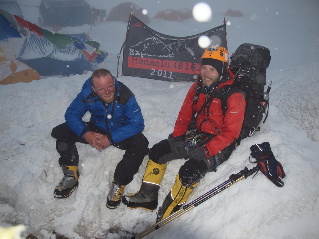 Po sestupu v bezpečí základního tábora. Sil už nezbylo na rozdávání. Z kopce se nám podařilo všechno postahovat.