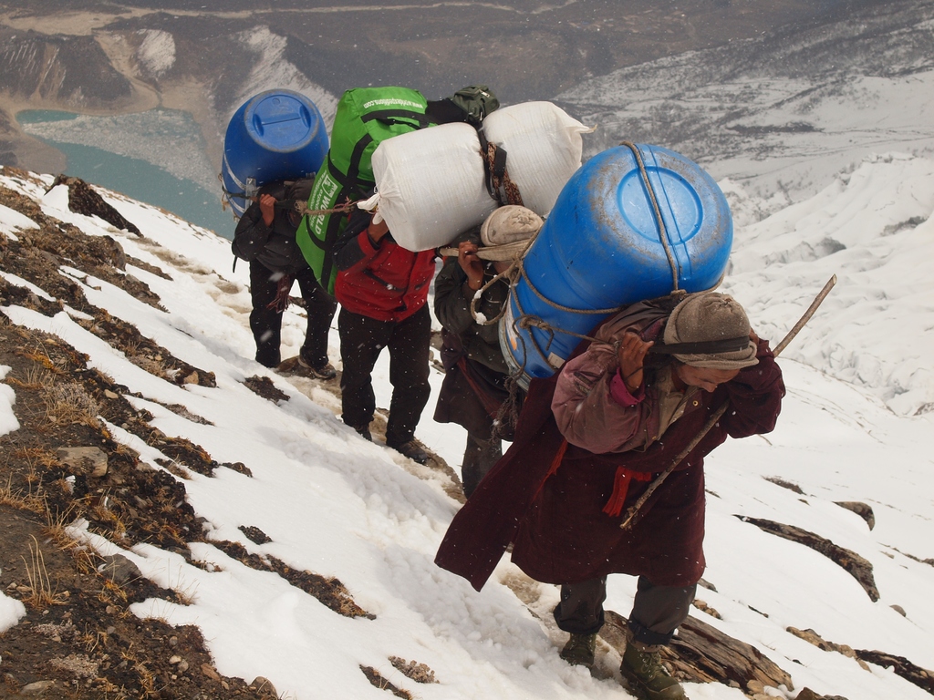 Nosiči ze Samagaunu. Pečlivě navážené náklady. Striktně dáno, maximálně 20 kilo. Máš-li více, platíš. Zde mají monopol pouze místní. Nikdo jiný nemůže jejich práci zastat. Nechť vesnice prosperuje.