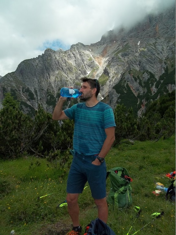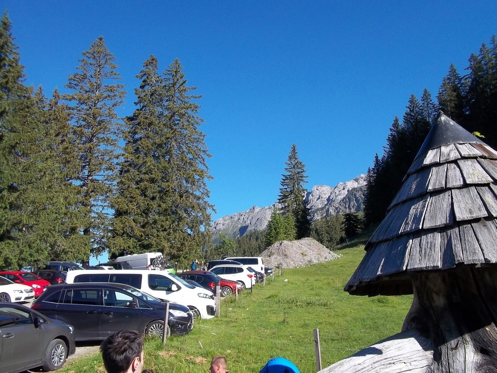 Autem jsem přejel k horskému hotelu Arthurhaus, kde začíná turistická cesta na vrchol Hochkönigu. Je zde placené parkoviště za 2.5 EUR. Po této turistické cestě jsme se měli všichni z ferraty vracet. Vlivem událostí předchozích dní (vzdušné úseky ferrat mi nedělají úplně dobře) se moje plány změnily. Jako správný domestik jsem si naplnil batoh důležitým proviantem (4x Prazdroj, 1x červené víno), abychom mohli s kluky oslavit naše setkání a jejich dobytí vrcholu a vyrazil jsem do kopce.