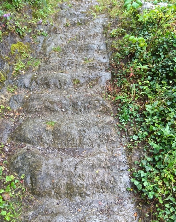 ... např., že kameny jsou ohoblované od koňských kopyt a na krajích cesty jsou do kamenů vyryté drážky od kol vozů.