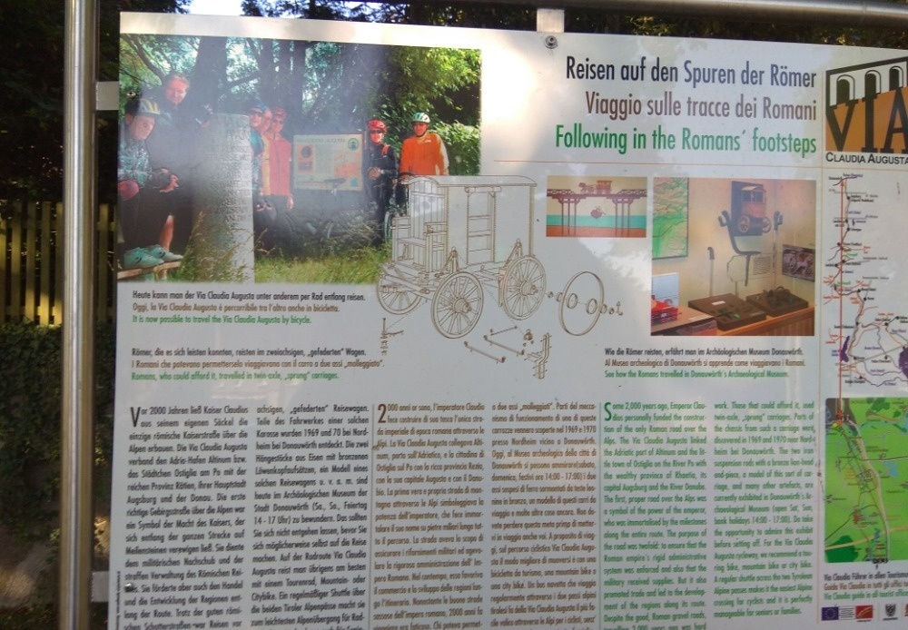 Po cestě míjíme informační tabule upozorňující na pozůstatky staré cesty Via Claudia Augusta a dozvídáme se detaily k historii cesty...