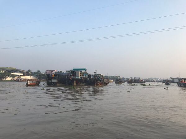Hned ráno jsme se ještě před východem slunce nalodili na dřevěnou loďku a vydali se na největší plovoucí trh Cai Rang.