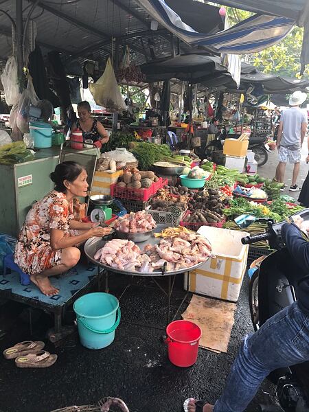 Po cestě zpět do staré čtvrti jsme se přesvědčili o tom, že Vitenamci na kole nebo skútru dokáží převézt opravdu cokoli. Viděli jsme také další zvláštnost – Železniční uličku. Je to ulice, skrz kterou vede železnice a jezdí vlaky, úzká tak akorát na koleje. Bohužel ji pár týdnů po naší návštěvě pro turisty uzavřeli, z důvodu bezpečnosti.
