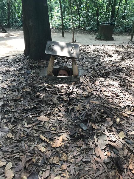 Poslední den nás čekala další perla! Tunely Cu Chi. Podzemní tunely Vietkongu, kde se Vietnamci schovávali před Američany. Jedná se o komplex tunelů ve 4 podzemních úrovních. My jsme měli možnost si projít cca 200 metrů těchto tunelů. Jelikož jsou vysoké pouhých 120 cm, svítit jsme si museli mobily a šlo nás 20 ve skupině, troufnu si říct, že se nejedná o nejvhodnější atrakci pro klaustrofobiky. Ale za mě třetí nejlepší zážitek z cesty.