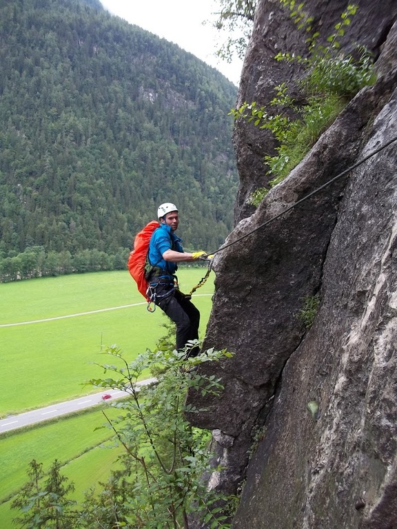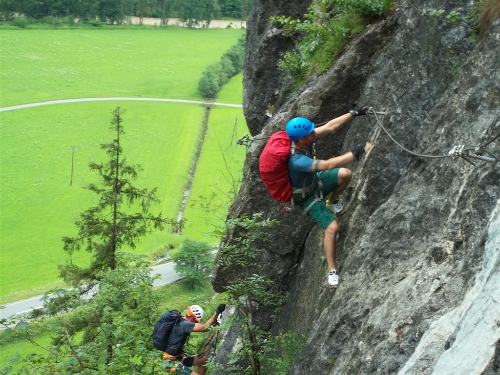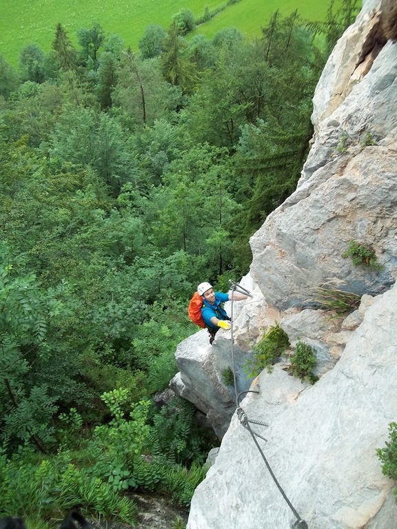 Lézt na skály jezdím 15 let, ale poprvé jsem si vyzkoušel opravdovější ferraty až na tomto výletu v Rakousku. Oproti skalnímu lezení to byla velká změna a mokrá ferrata obtížnosti E/F (na stupnici končící Fkem) dokáže trochu překvapit.