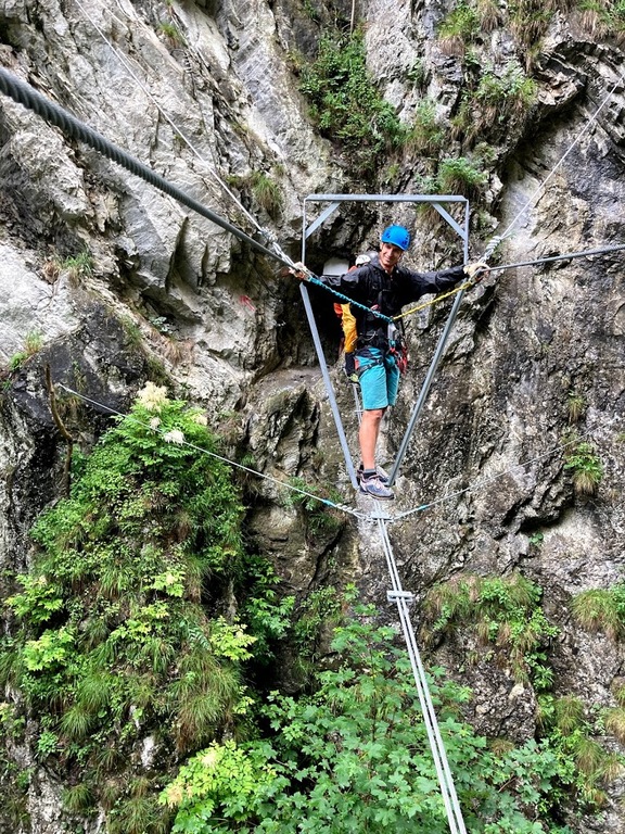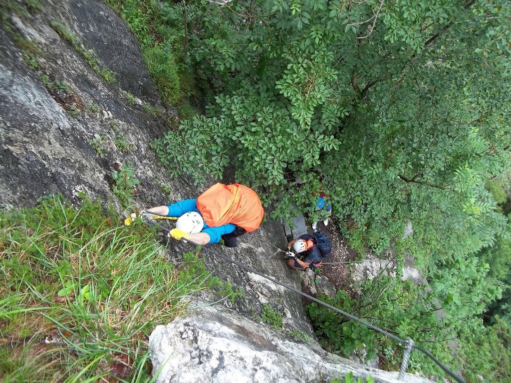 Celá ferrata je pěkná, pestrá, ani bych neřekl, že je extrémně těžká. Lezete převážně po kramlích, takže ani to, že bylo po dešti, zas tak moc nevadilo. Stačí mít lehce nadprůměrnou fyzičku, a hlavně nemít strach z výšek nebo spíš hloubek.