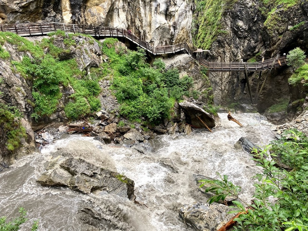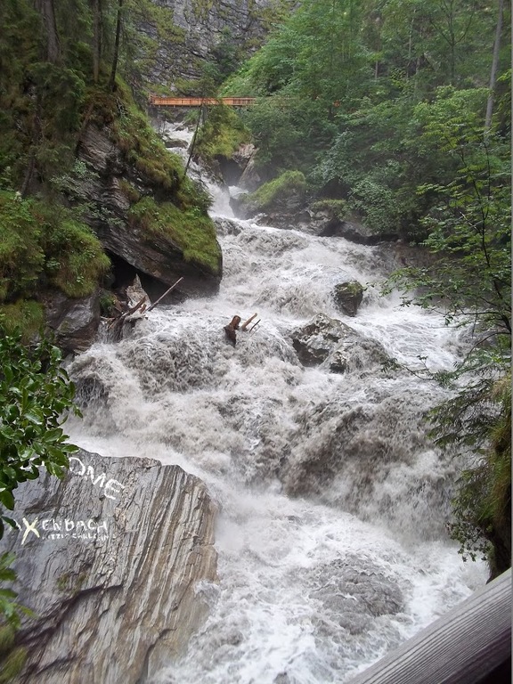 Dalším kouskem na řadě se stala oblíbená ferrata Kitzklettersteig obtížnosti D. Nalézá se v soutěsce Taxenbach – Kitzlochklamm, kterou v běžném stavu vody protéká říčka Rauriser Arche, v našem případě spíše rozbouřená řeka.