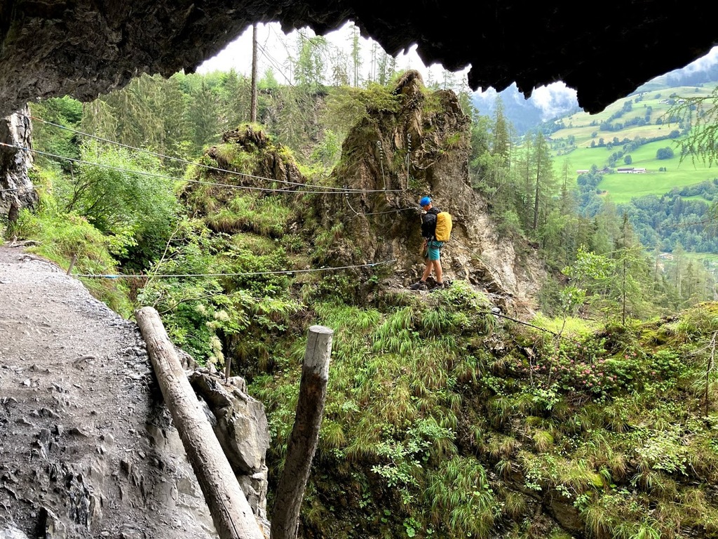 Po našem příjezdu na místo pršelo, ale měli jsme alespoň čas na oběd a malou siestu. Jakmile déšť ustal, bylo rozhodnuto, že se alespoň půjdeme podívat do soutěsky a pro strýčka příhodu přibalíme i ferratové sety. Vstup do soutěsky, ze které vede ferrata je zpoplatněn. Za částku 7.50 Eur za dospěláka se můžete vydat na průzkum tunelů a lávek vedoucích nad řekou Rauriser Arche a při tom pozorovat kaňony, vodopády a úžasné skalní útvary, které zde příroda vytvořila.