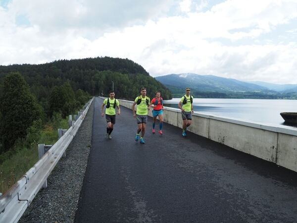 Trocha nervozity přeci jen cítit je, možná obava. Hned na úvod to nejtěžší. První etapa má 48 km a skoro 2000 m pozitivního převýšení. No nic, jdeme na to! Linda, Radek, Mužajs a já se rozbíháme velmi opatrně a hned pěkně do kopce, abychom po chvilce mohli spadnout k přehradě Nýrsko, kde nás čeká první fotokoutek.
