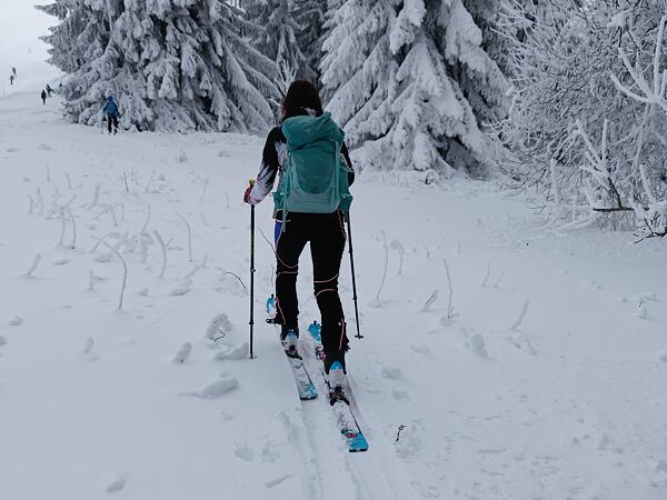 Také objem kapes je velký. Lze do nich umístit spoustu pokladů, které je fajn mít při ruce jako třeba telefon, doklady, peníze, sušenku, mazání na rty a podobně. Zejména levá kapsa svádí i k použití na skialpové pásy, ale v reálu stačí jen na jedem pás a druhý by stejně musel do batohu nebo do bundy.
