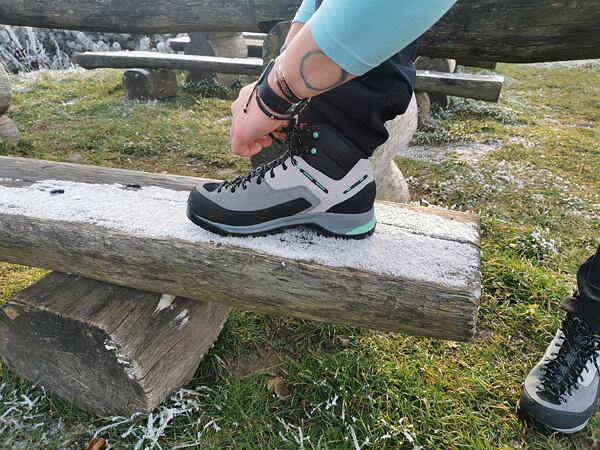 V případě modelu Garmont Vetta Tech je mezipodešev dostatečně tuhá a gumová obsázka navíc botu ještě zpevňuje. Není tedy třeba se bát tyhle boty využít i při zimních výstupech s použitím turistických maček, nebo pro vysokohorskou turistiku. Upozorňuji ale, že pro poloautomatické a automatické mačky tenhle model určený není.