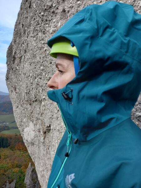 Plně recyklovaný 3vrstvý GORE-TEX® 50D je ošetřen PFC EC free voděodolnou DWR úpravou. V této variantě je membrána Gore-Tex® nalaminovaná mezi svrchní materiál a podšívku. Všechny tyto vrstvy jsou spojeny, membrána je tak velice dobře chráněna před poškozením. Tyto materiály jsou robustní a odolné. Což můžu potvrdit po nechtěném setkání se skálou, kdy jsem si na chvíli myslela, že mé testování právě skončilo. K mé radosti střet s ostrou skálou Makalu ustála.