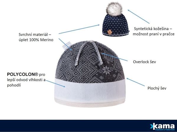 Všechny vyráběné svetry, čepice, sukně a další doplňky jsou díky prémiovým materiálům plně funkční, odolné a stálé. Vysokou kvalitu zpracování produktů podtrhuje i fakt, že po celou dobu životnosti výrobku, vám výrobek nebo jeho část, může KAMA opravit.
