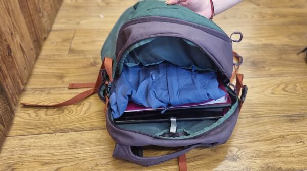 I když batoh na první pohled tak nevypadá, má objem 20 litrů. Vejde se do něj poměrně dost věcí. Pro mě je to na jednu stranu dobře, když jdu na výlet a na druhou stranu ne (čím větší, tím víc věcí tahám a někdy opravdu zbytečně). Jaká je tedy vybavenost batohu: