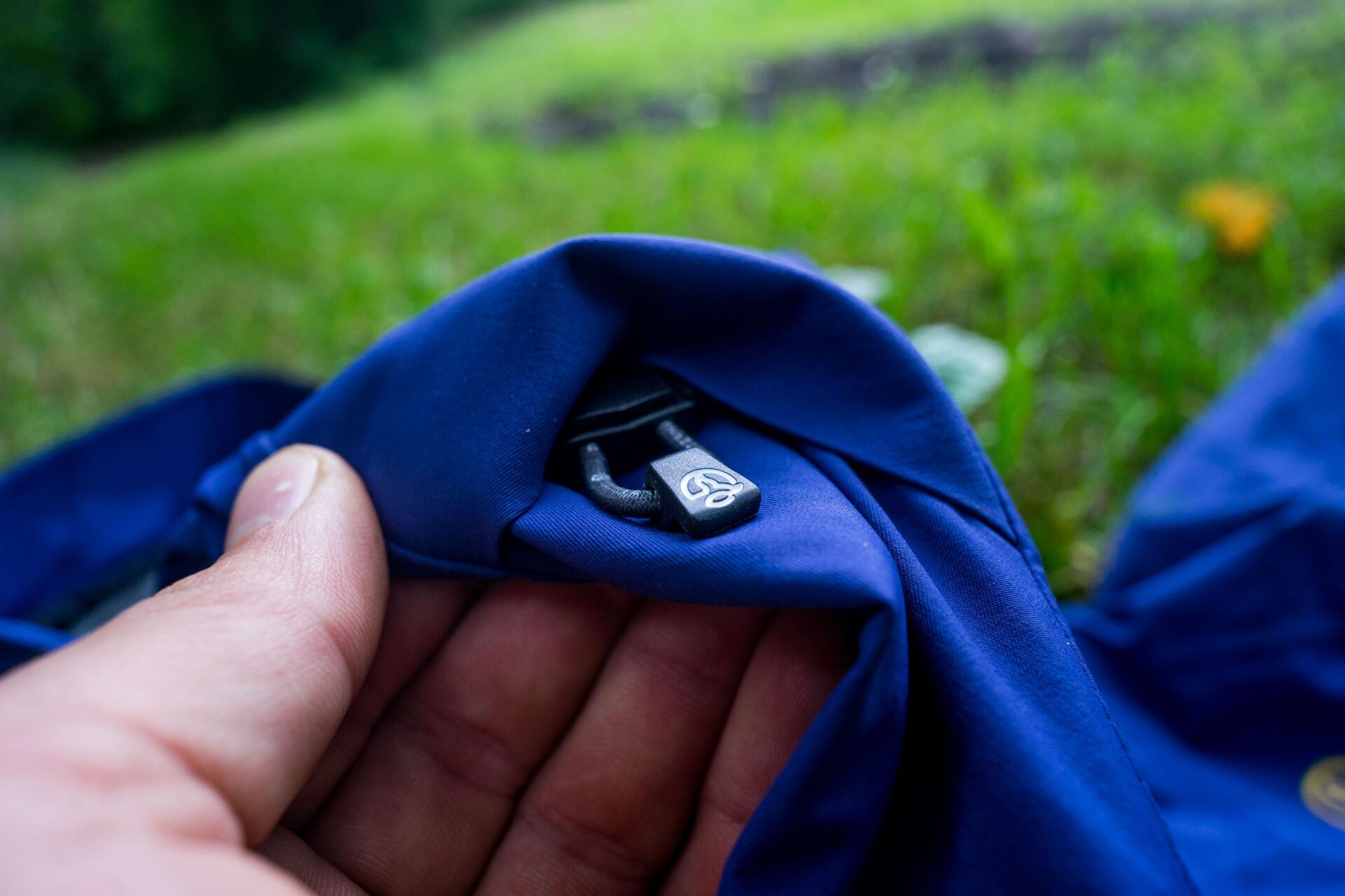Stahování spodního lemu jeukryto zevnitř bundy, takže jej můžete po zatažení kompletně schovat dovnitř bundy. Tohle mi u modelu Ascent taky trochu vadilo. Vytažená šňůrka výrazně přesahovala (v úrovni poutek) až na sedák a často jsem si do ní omylem cvakl karabinu, do jejíhož „zobáčku“ se gumička zachytávala. A to bylo v některých „napínavých“ chvílích docela o nervy.
