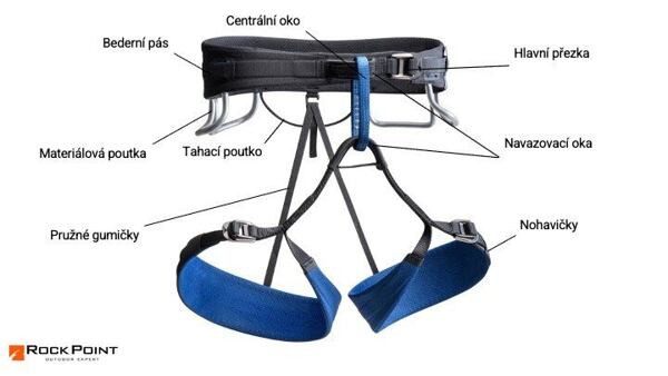 Nejprve se pojďme zorientovat v tom, z čeho se lezecký úvazek skládá: