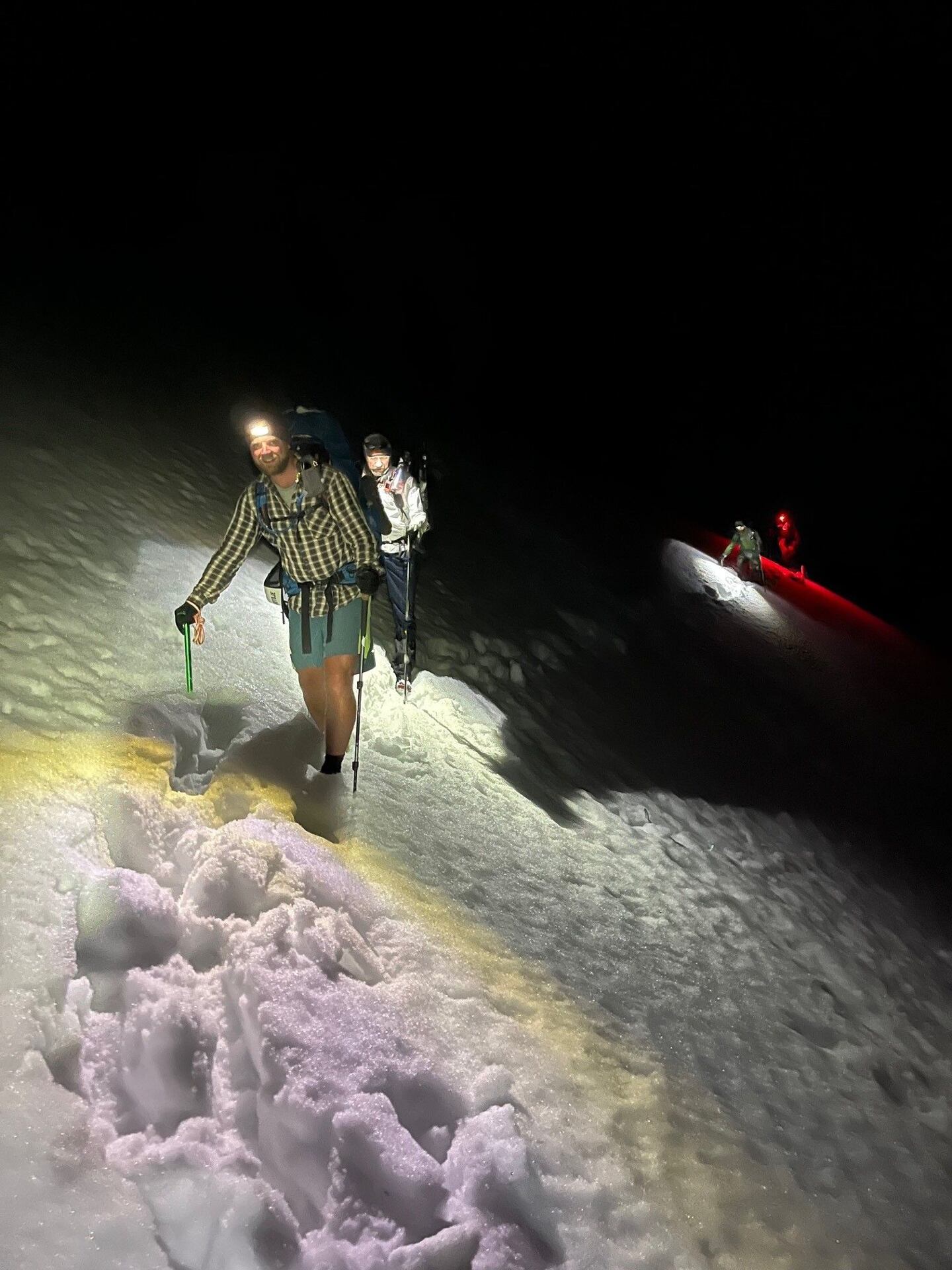 Pak nás čekal “zlatý hřeb” pohoří San Gabriel, a to zdolání vrcholu Baden-Powell 2 860 m n. m.! Na trail jsme vyrazili ve 3 h v noci. Bylo zde spoustu úseku, kde jsem byl opravdu rád, že mám v ruce cepín a na botách nesmeky. Směrem na vrchol sněhem nevedly žádné stopy, takže jsme si trail vlastně tvořili sami, stejným týmovým způsobem jako předchozí den. Pravděpodobně jsme byli první skupina, která z této strany vrchol zdolala. Průměrná rychlost 1 míle/h. Výstup to byl náročný, ale pocit po zdolání vrcholu krásný! Tímto jsme opustili pohoří San Gabriel.
