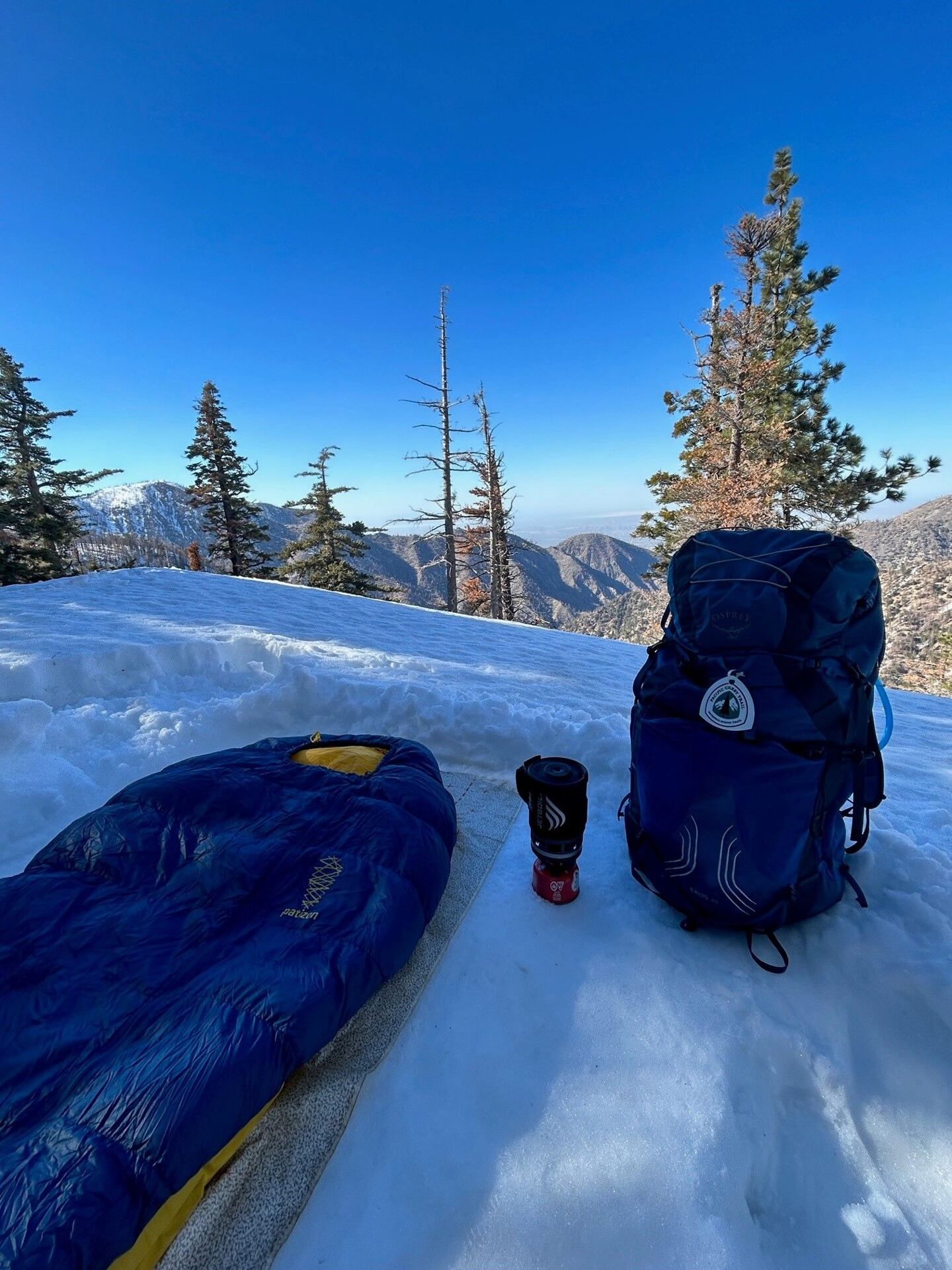 Následující dny jsme sestoupili níže až do oblasti Mohavské pouště, kde jsme se prošli po Los Angeles Aqueduct, což je velké potrubí, které sbírá vodu z hor a přehrad a tou zásobuje město Los Angeles. Po překonání pouště jsme opět začali stoupat do hor, kde jsme nad 1 500 m n. m. opět narazili na sníh. Nebyla zde hodně exponovaná místa a šlo se dobře. Obvyklé teploty přes noc byly lehce pod nulou, ale i minus čtyři. V kombinaci třísezonního spacáku Patizon G400 s komfortní teplotou -1 °C a péřovky Hannah Arden mi bylo teplo!