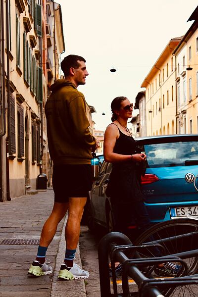 Vyrážíme autem z Prahy. Kromě Aničky a mě jedou ještě dvě naše kamarádky Kačka a Áďa jako support, takže budeme moci trasu absolvovat opravdu„nalehko”. Jedeme přes Pisu a její šikmou věž do Livorna, tam najíždíme na trajekt a pak ještě dojíždíme 2 h na startovní místo do vesnice Calenzana.