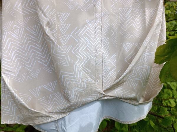 Díky volnějšímu střihu se látka nelepí na tělo, během nošení jsem stále cítila, jak mne ochlazoval vzduch, který proudíl mezi mým tělem a halenkou. S tímto materiálem a střihem rozhodně nehrozí, že by se vám v parném létě v podpaždí vytvořily koláče od potu.
