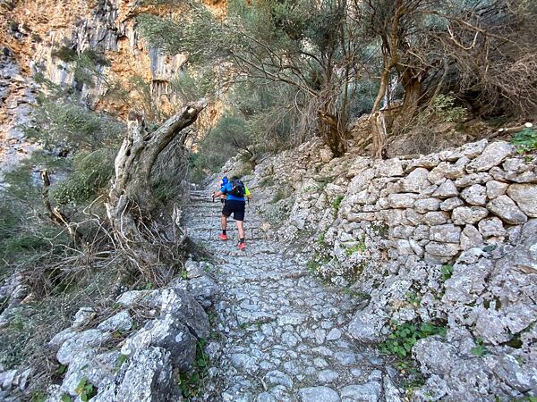 Sbíháme do Valldemossy, kde si dáváme krátkou pauzu na sváču a prohlídku klášterních zahrad a chvilku na to zahajujeme stoupání do nejvyššího bodu dnešního dne. Z běhavého stoupání se postupně stává čím dál tím strmější stojka a odměnou nám je překrásný fotogenický hřeben kolem vrcholu Puig Gros (938 m).