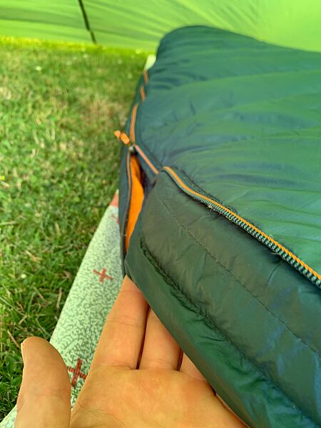 Přesto, že jsou dva jezdce na zipu u kvalitnějších spacáků dnes již samozřejmostí, určitě to stojí za zmínku. Když už byla dostatečná zima na to, abych se mohl do spacáku zachumlat, ale potřeboval jsem, aby pořád větral, přišla tato vlastnost vhod. Mohl jsem ho mít zapnutý buď jen v úrovni pasu, nebo jen v úrovni ramen a zbytek nechat rozepnutý.