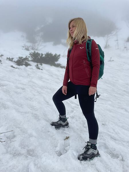 Na horách mi opravdu posloužila jako ochranná vrstva proti větru a chladu, kdy jsem pod ní vzala jen merino triko s dlouhým rukávem, protože ve výšce nad 1 500 metrů se stále držel sníh. Kombinace Sorapis bundy a merina mi bohatě stačila jak při výstupu, tak při zasloužené svačince na vrcholu.