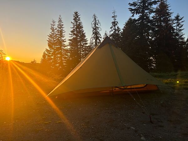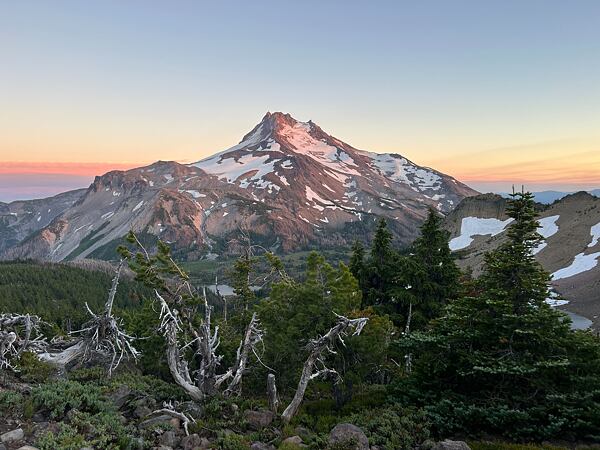 Další den jsem měl možnost nové boty pořádně prošlápnout, protože jsme ušli 30 mil. Stále Altry, ale z modelu Lone Peak 7 jsem přešel na Timp 4, které mají vyšší a měkčí podrážku. Byla to celkem změna, ale šlo se mi v nich dobře. Navíc jsme spali na hřebenu s krásným výhledem na horu Mount Jefferson (3 201 m n. m.).