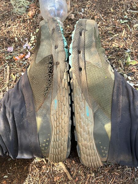 Následující den po obědě ale přišlo rozčarování. Během pauzy na oběd jsem zjistil, že na dva dny starých, nebo vlastně nových, botách mám obrovskou díru na vnitřní straně (jako vždycky). Já mám i normálně dost široké chodidlo a během dálkových trailů je normální, že se lidem noha zvětší a rozplácne. Tomu přisuzuji hlavní příčinu. Je to takový můj handikep.