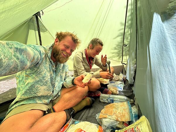 Nabídl mi, že kdyby se mi nepodařilo dostopovat zpět na trail, stačí zavolat a mohu přespat u něj na zahradě. Nikdo další už mi nezastavil, a tak jsem strávil krásný večer ve společnosti Toma a jeho přítelkyně, kteří mi vyprali oblečení, mohl jsem se vysprchovat, a ještě jsem dostal večeři. Neuvěřitelné, jaký příběh dokáže zapříčinit díra v botě.