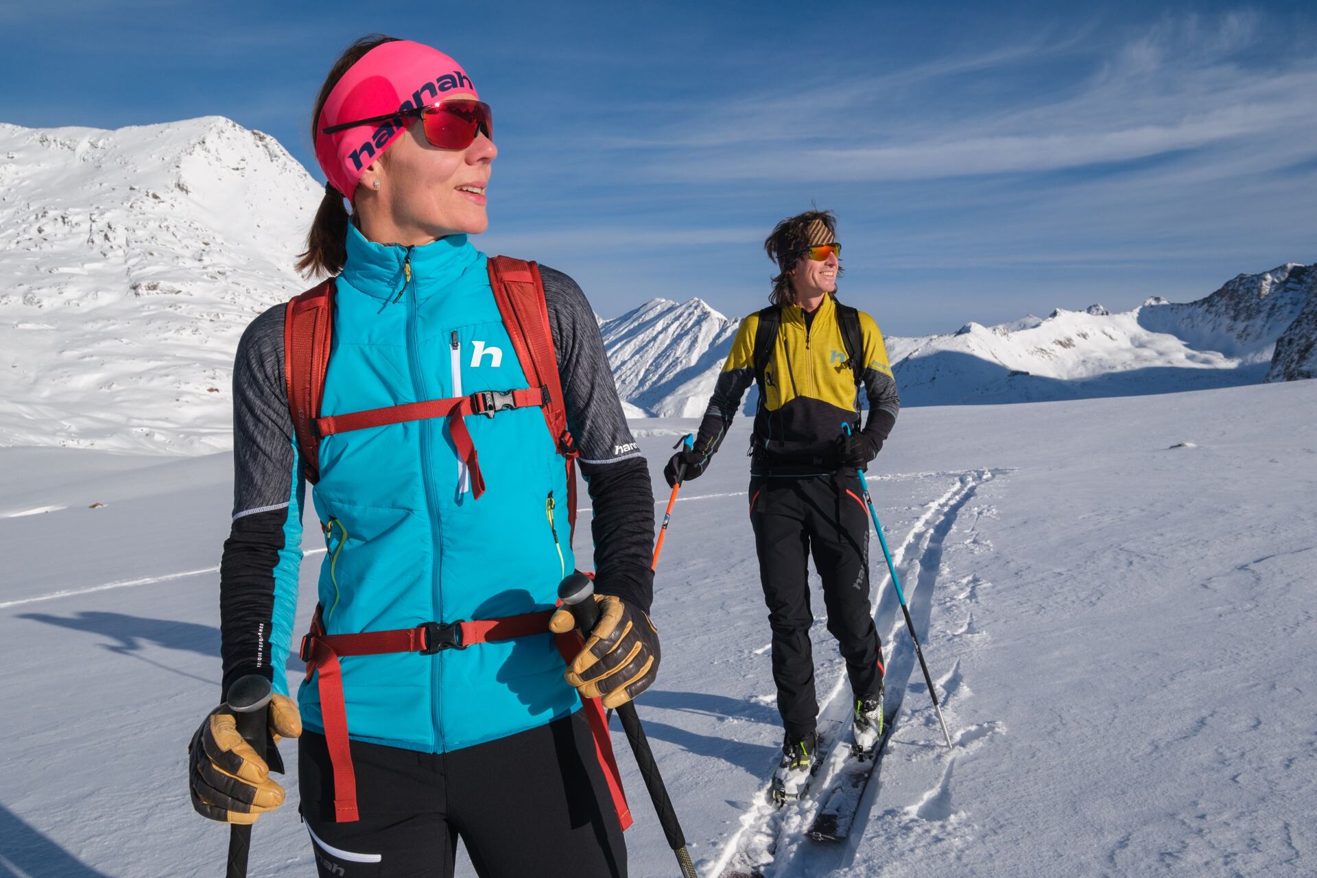 Zatímco horní část oblečení můžeme během skitouringu vrstvit a zase odlehčovat podle libosti kdykoliv „za pochodu“, spodní část těla je odkázána na to, do čeho ji oblečeme už na startu. Pečlivý výběr je proto velmi důležitý.