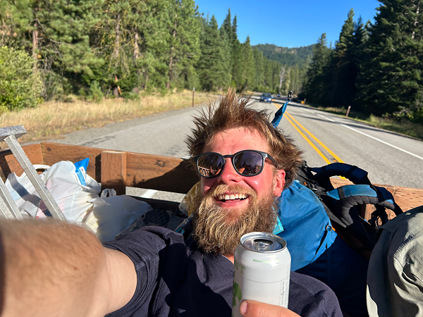 Nakoupit zásoby jídla na další asi stomílový streč a dát si něco v jedné z restaurací nabízející německou kuchyni. Dali jsme si schnitzel a jedno. Zpátky do Stevens Passu to bylo 35 mil a my chytli parádní stop. Celou cestu jsme jeli korbě menšího náklaďáku, a k tomu jsme dostali jedno vychlazené. Večer nám děti společně s vedoucími z Mountaineers Clubu připravili večeři a my si mohli jít odpočinout.