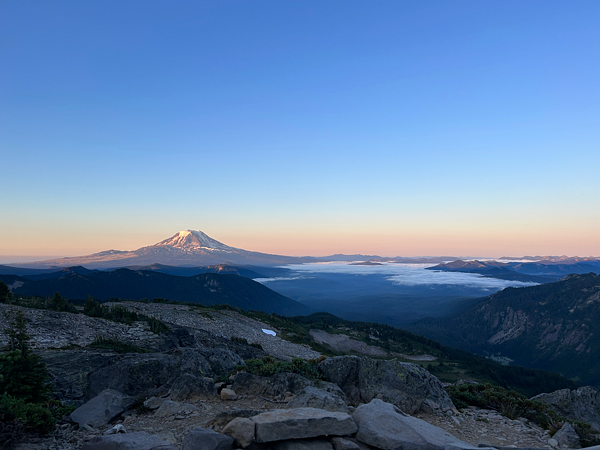 V oblasti Goat Rocks bylo nádherných výhledů opravdu mnoho. Jen co jsme ráno vyšlápli do prvního sedla, hned jsme koukali na další obrovskou sopečnou horu pokrytou ledovci Mount Rainier (4 392 m n. m.) a k tomu na krásný hřeben, po kterém jsme dále sestupovali ze sedla. Zbytek dne jsme spěchali do White Passu, kde byla otevřená čerpací stanice se zázemím pro hikery. Přišli jsme asi hodinu před zavíračkou, takže to bylo krásné zakončení s nakoupeným jídlem.