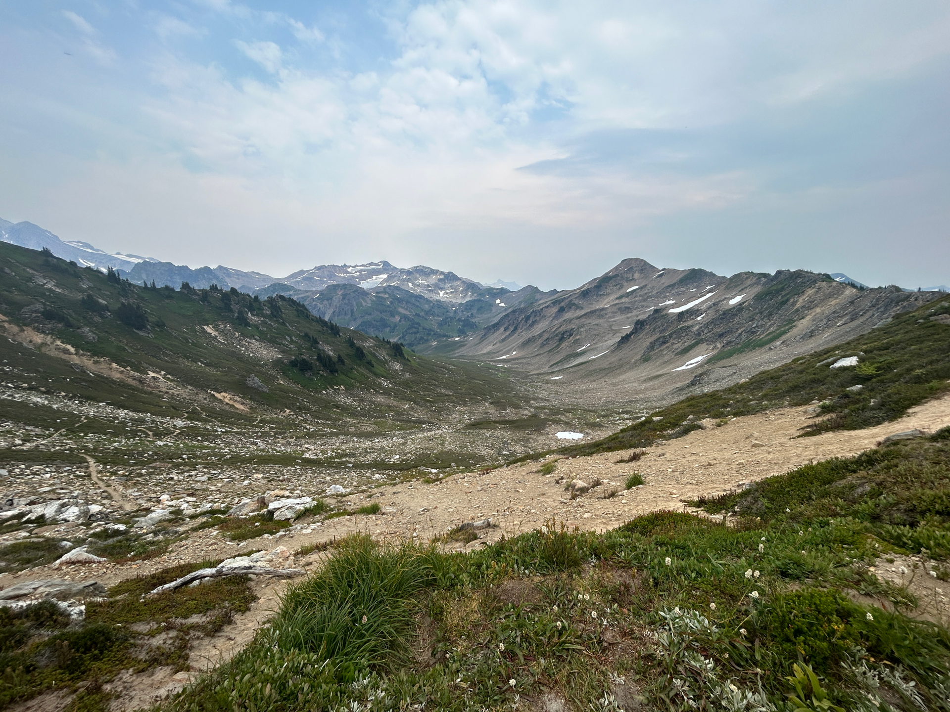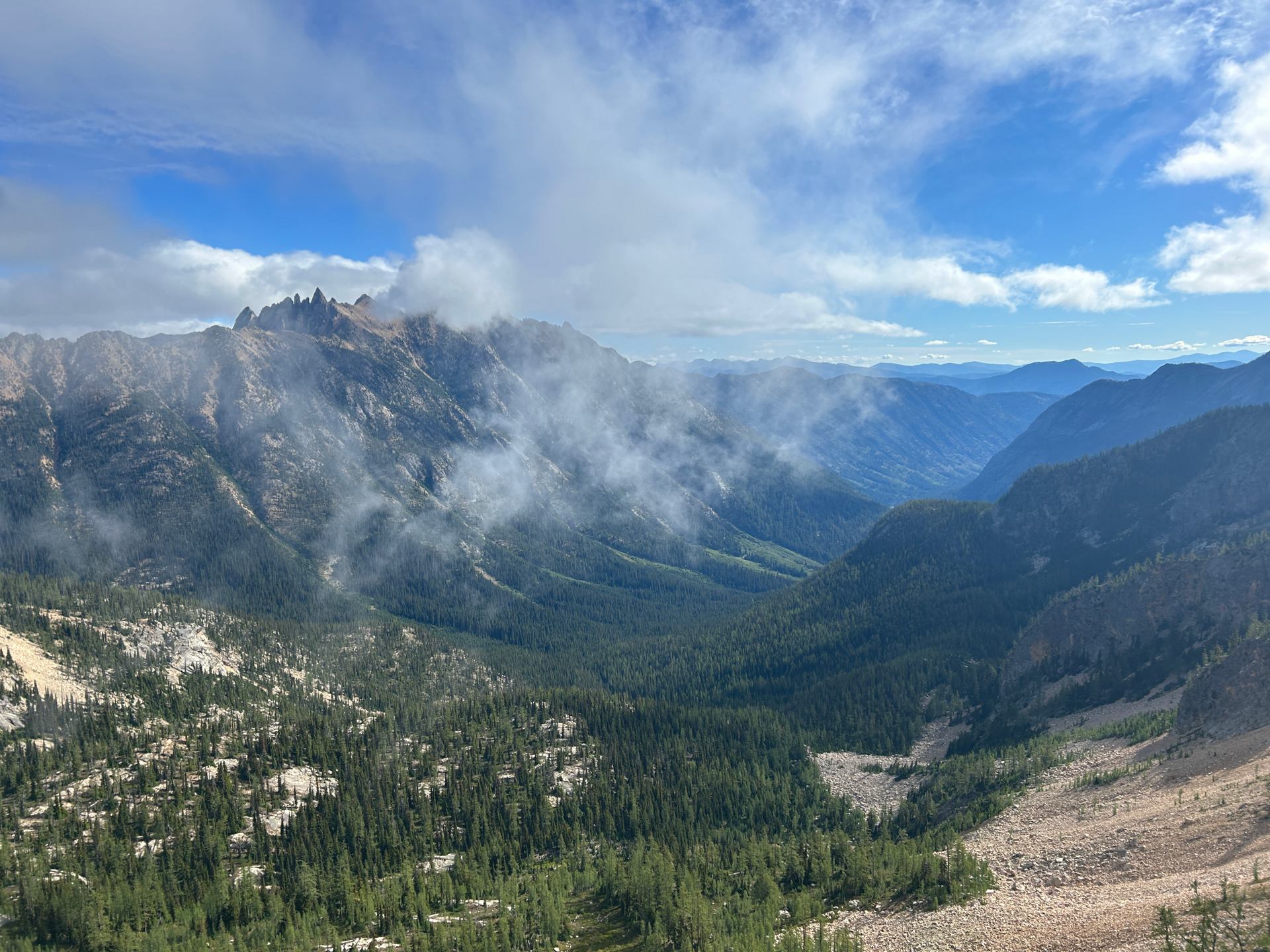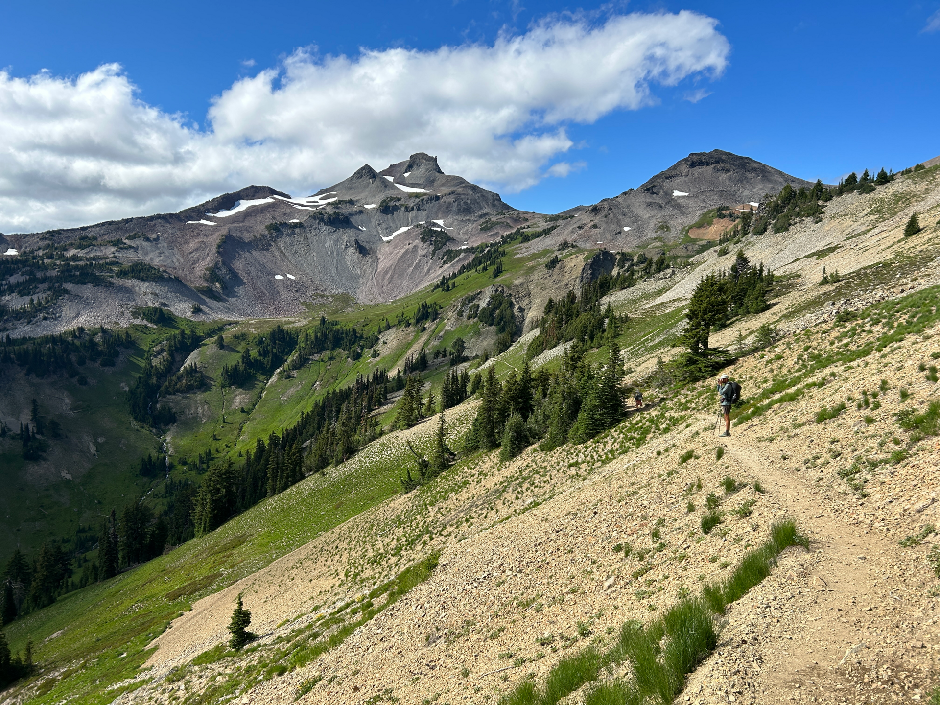S naší rychlostí, a to nemyslím ironicky, jsme to do další civilizace měli 4 dny. Během těchto dnů se nám jen potvrzovalo, že Washington je svojí krajinou opravdu nádherný. Ve srovnání s Oregonem tu stále bylo na co koukat. Ano, i tady trail častokrát padal do hlubokých údolí s hustými lesy, ale oproti Oregonu to nikdy netrvalo dlouho a už jsme se zase drápali vzhůru. Trail naopak častokrát vedl delší dobu po nějakém hřebenu či vrstevnici. To se mi moc líbilo.