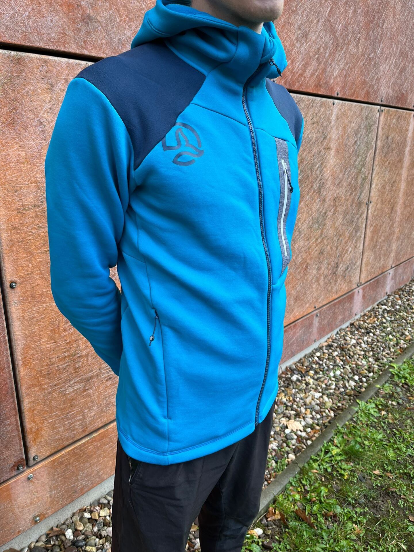 Když jsem bundu poprvé oblékl, opět se připomenul příjemný pocit „útulnosti“ a hřejivosti. V případě Janpuru je to díky materiálu Warmshell PRO. Ten je kombinací nylonu a polyesteru a na vnitřní straně bundy má „chlupatou“ nopovou úpravu. Ačkoliv má materiál vyšší gramáž (250 g/m2), bunda působí lehkým a zároveň robustním dojmem. Protože firma klade velký důraz na péči o životní prostředí, je materiál vyroben z recyklovaných rybářských sítí a samozřejmostí je certifikace Bluesign.